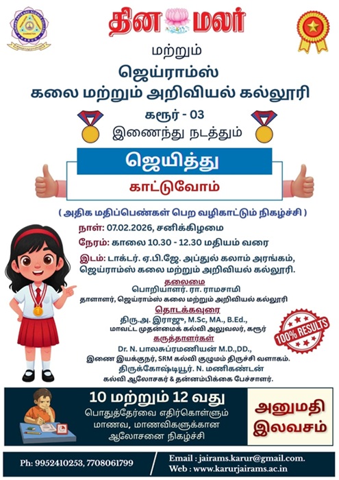 தினமலர் & ஜெயராம்ஸ் கலை மற்றும் அறிவியல் கல்லூரி, கரூர் இணைந்து நடத்தும்